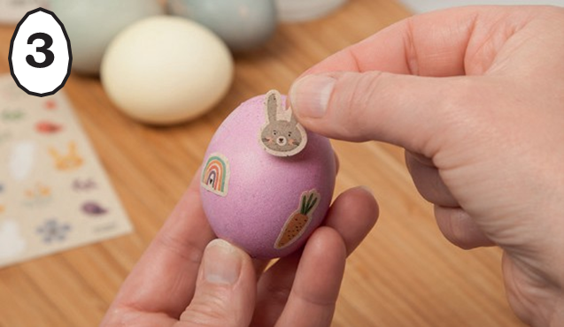 • Kaunistage värvitud mune kaasasolevate kleepsudega. Siluge kortsud küünega.